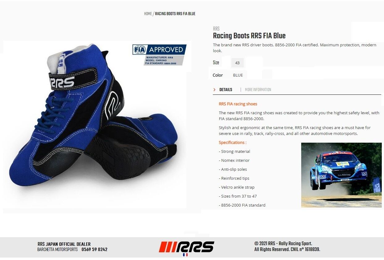 RRS FIA公認 耐火 レーシングシューズ アオ 43 サイズ (26.96cm)