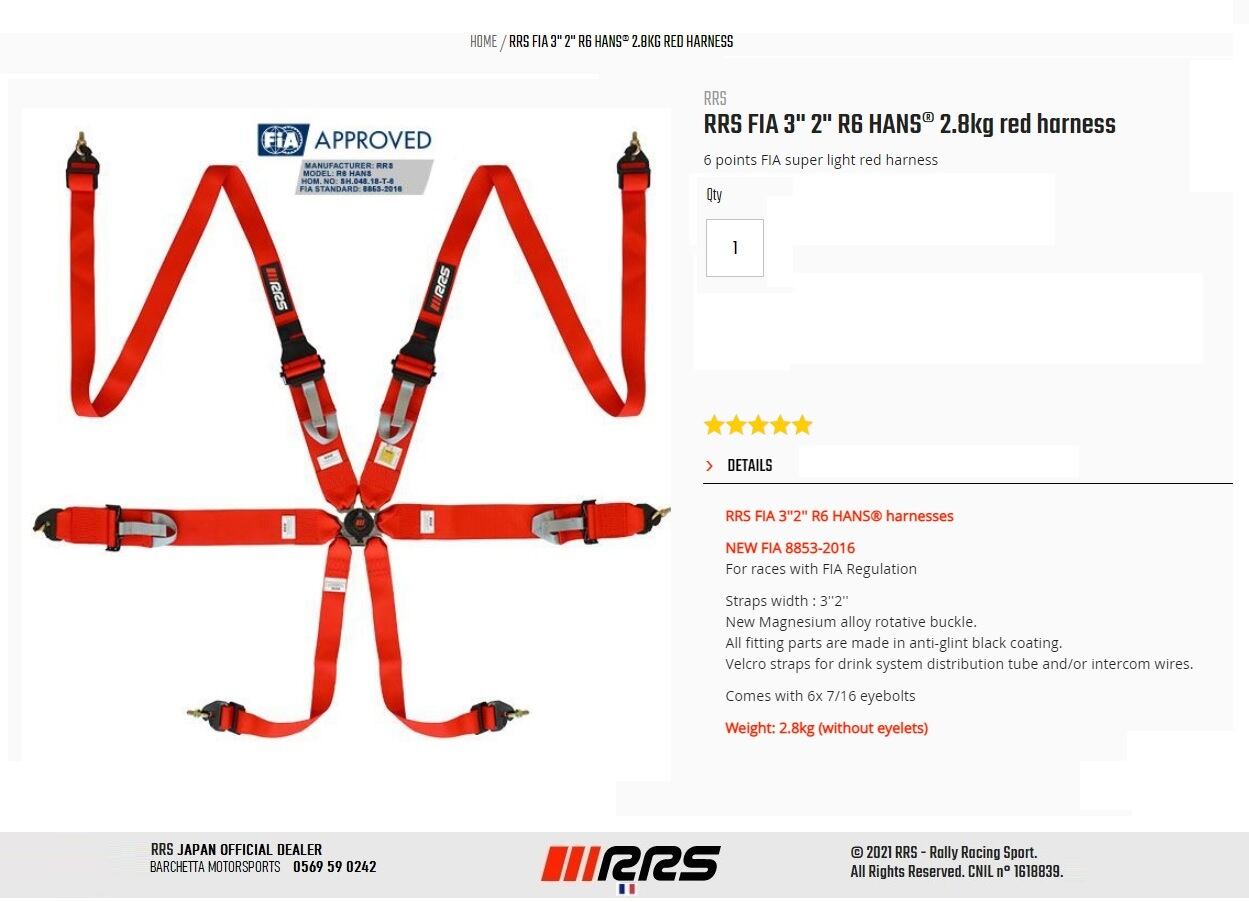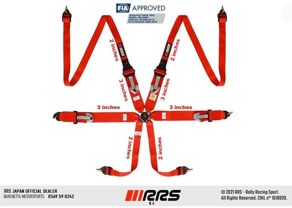 RRS FIA公認 6点式 レーシングハーネス FIA 8853-2016 対応 ハンス HARNESS FIA RRS R6 HANS® 2.8 KG - レッド | Barchetta Motorsports