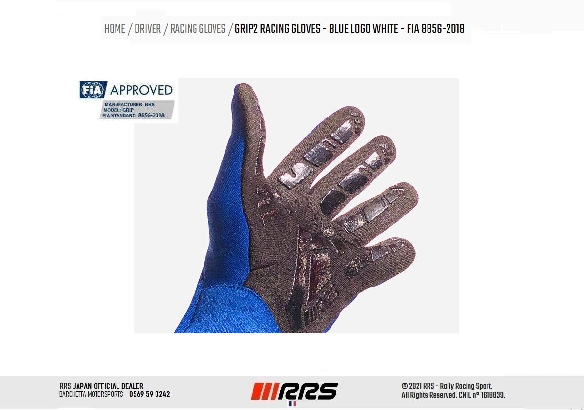 RRS GRIP2 FIA 8856-2018公認 耐火 レーシンググローブ 9 サイズ ( M サイズ ) アオ