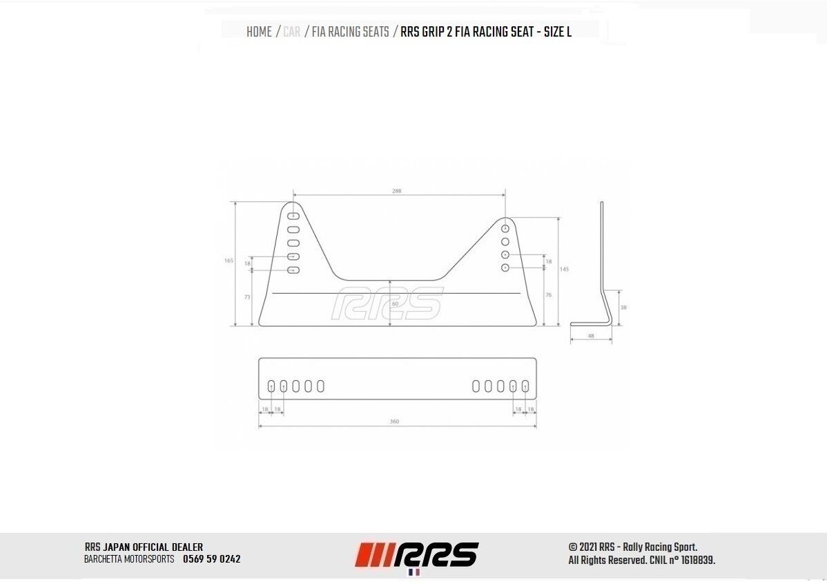 RRS GRIP 2 FIA 8855-1999 レーシングシート サイズ L + スチールシート取り付けブラケット