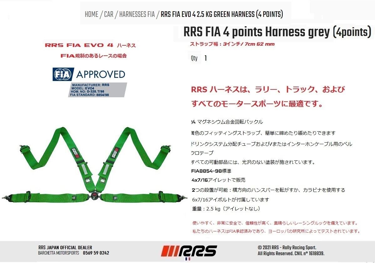 RRS FIA 8854/98 公認 4点式 EVO 4 レーシングハーネス 2.5 KG グリーン